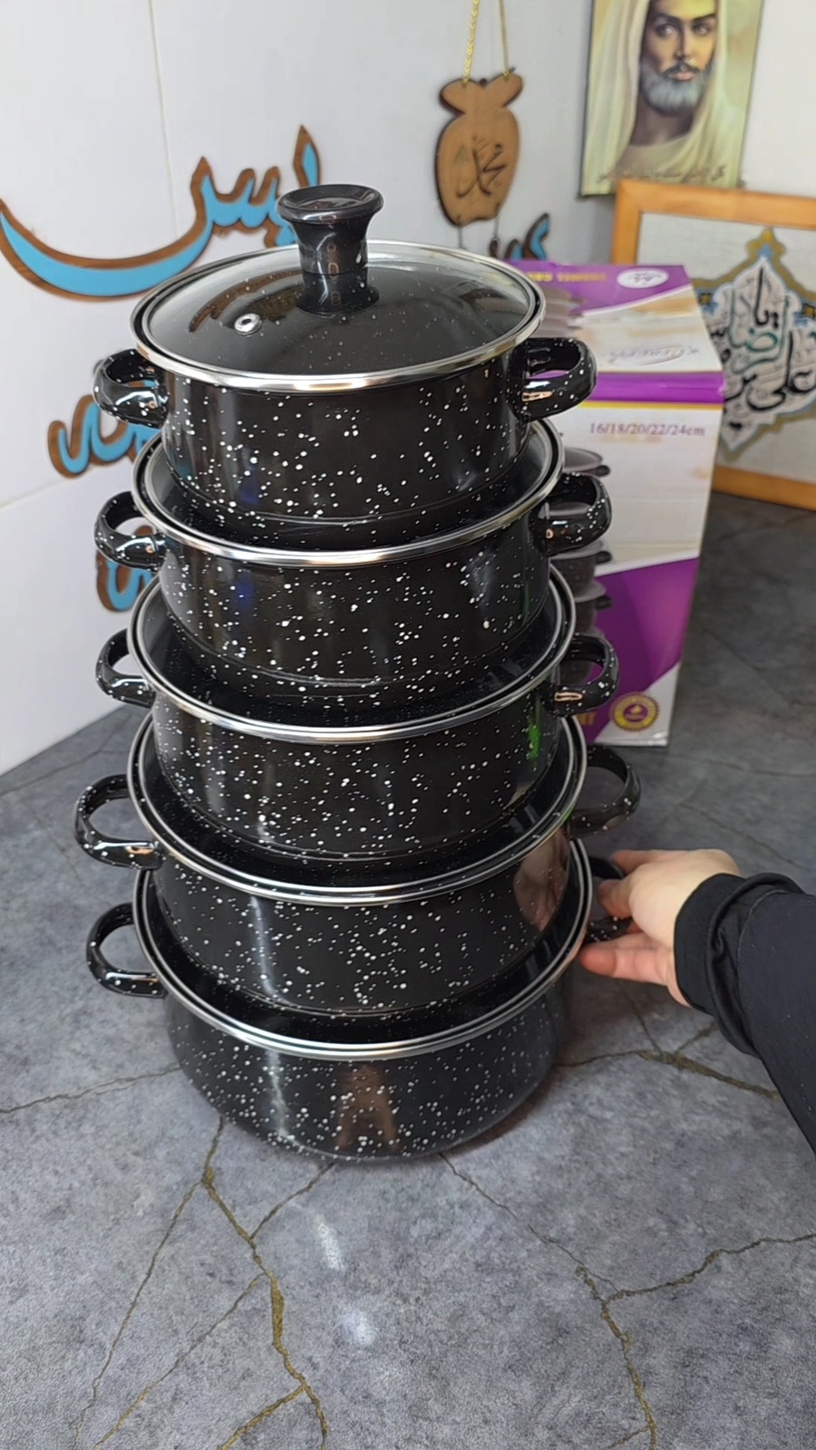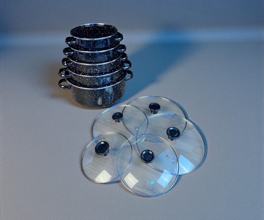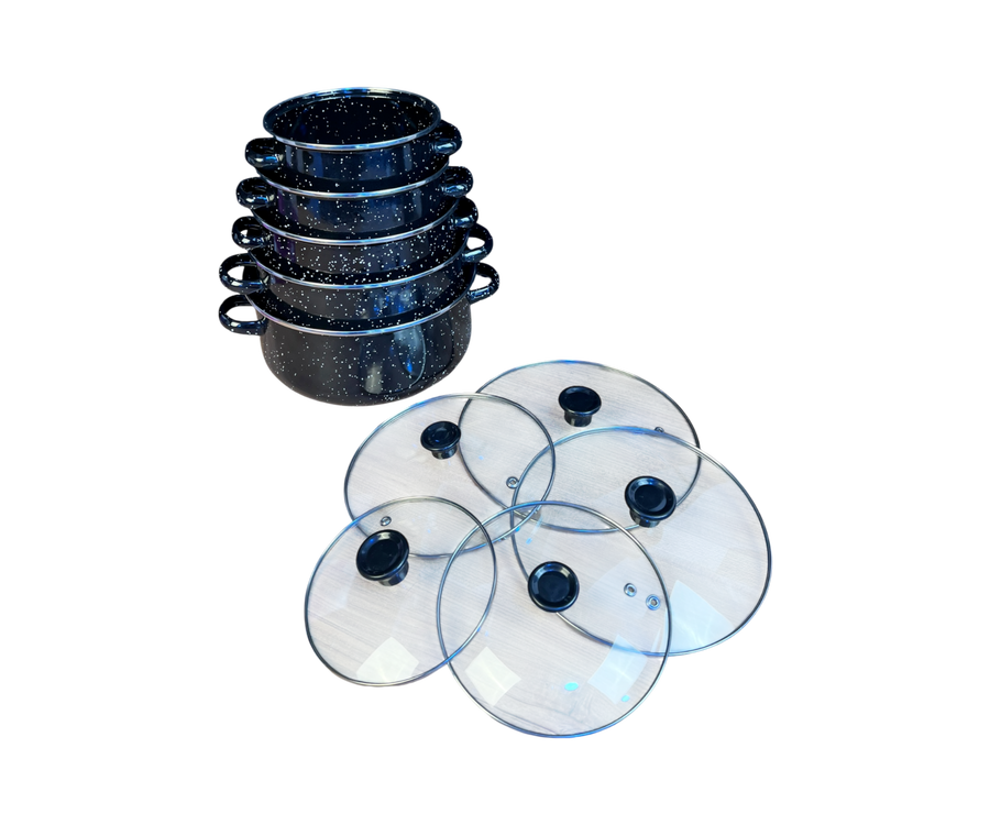 5 قدور بأحجام مختلفة.