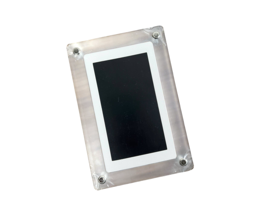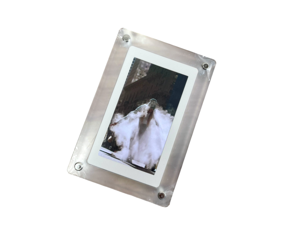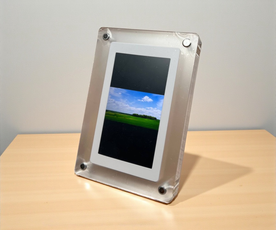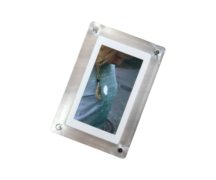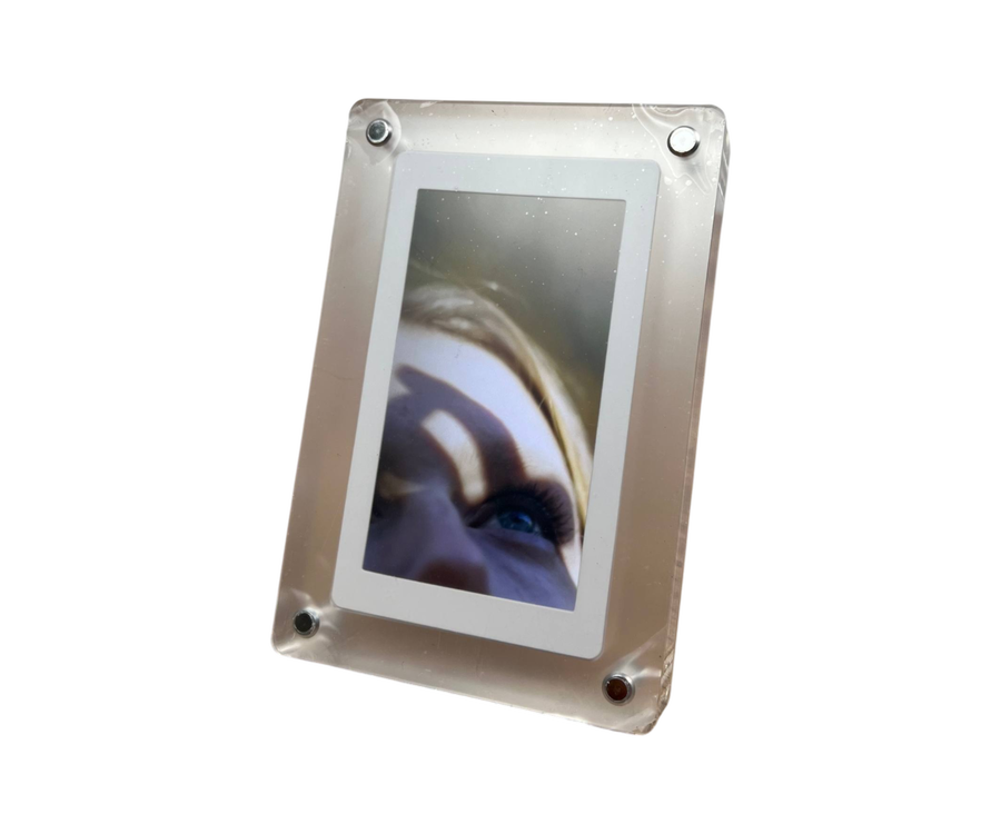 تصميم أكريلك شفاف أنيق يعرض الصور والفيديو بوضوح كامل بدون حدود سوداء.