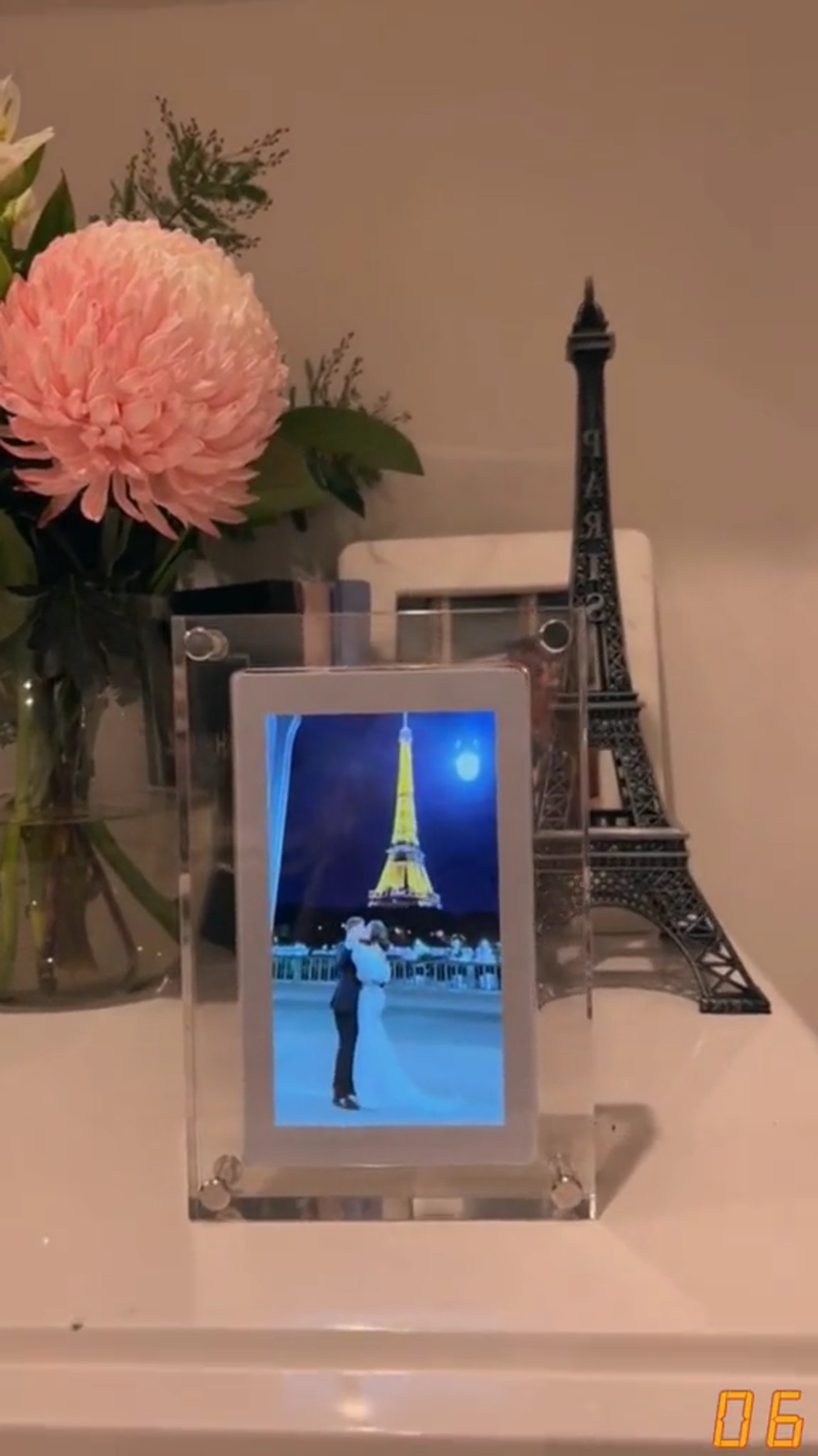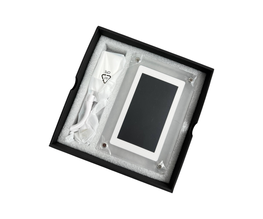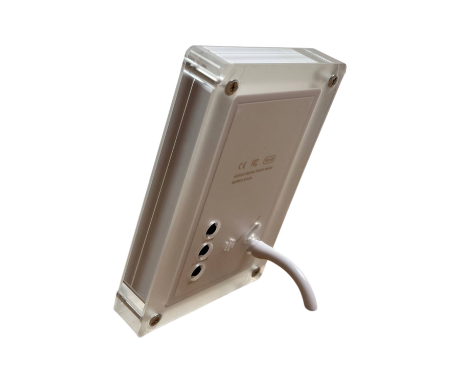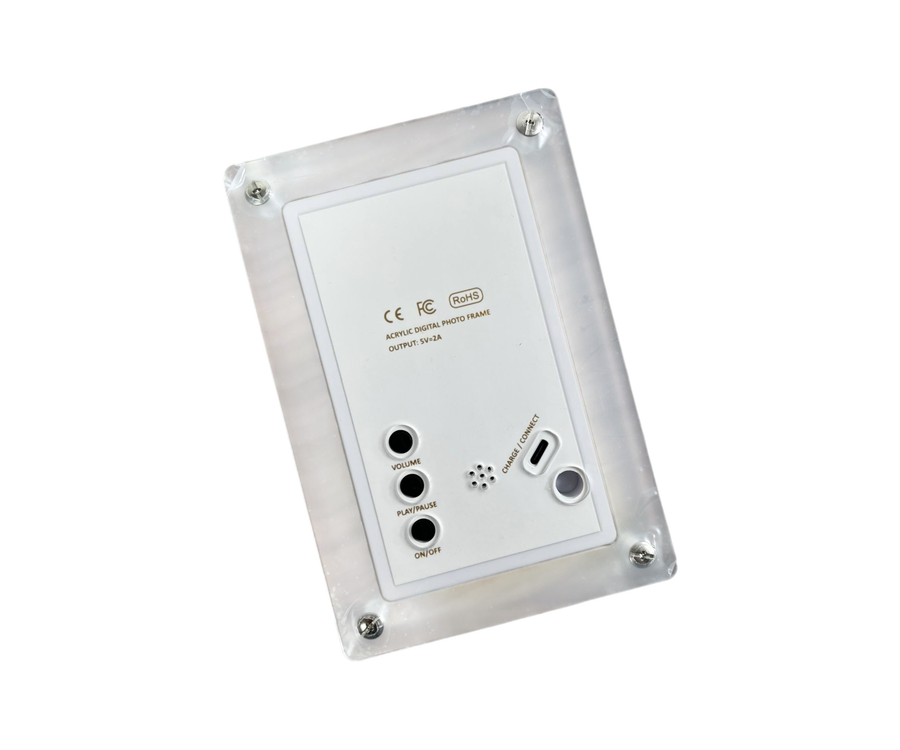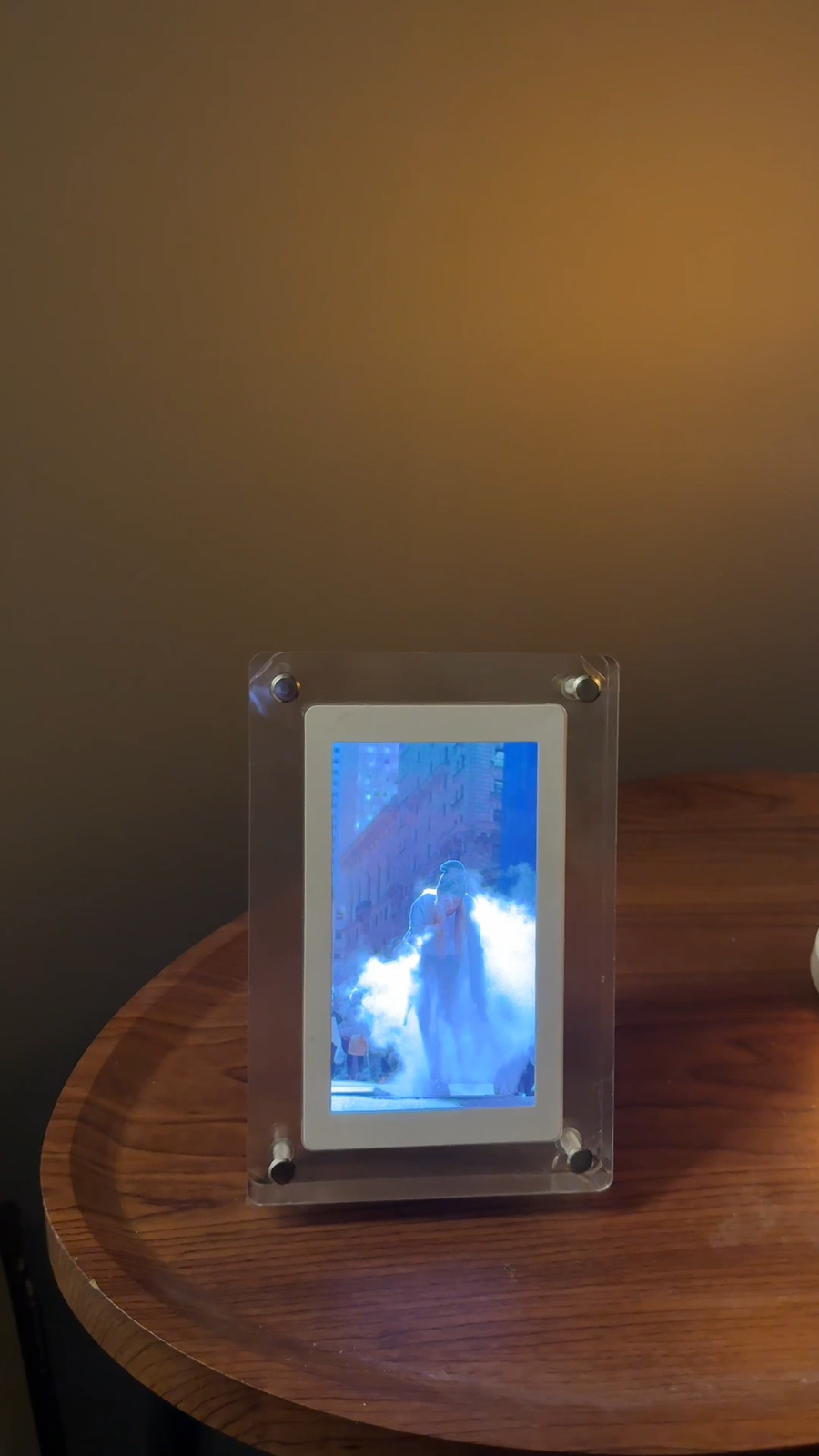 تصميم أكريلك شفاف أنيق يعرض الصور والفيديو بوضوح كامل بدون حدود سوداء.