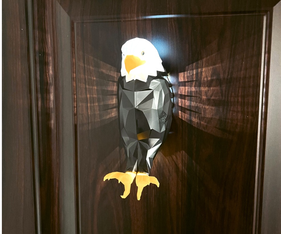 تصميم ثلاثي الأبعاد على شكل صقر مهيب يمنح المكان لمسة فنية راقية.