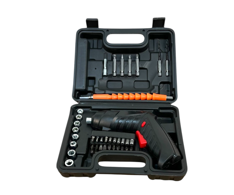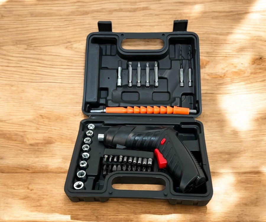 هل تعاني من فك أو ربط البراغي في الأماكن الضيقة؟ مع مفك البراغي الشحن الكهربائي، ستتمكن من إنجاز جميع مهام الصيانة المنزلية وتجميع الأثاث وإصلاح الأجهزة الإلكترونية بكل سهولة وكفاءة. تم تصميم هذا المفك ليكون سهل الاستخدام، مما يجعله الخيار المثالي لكل منزل!