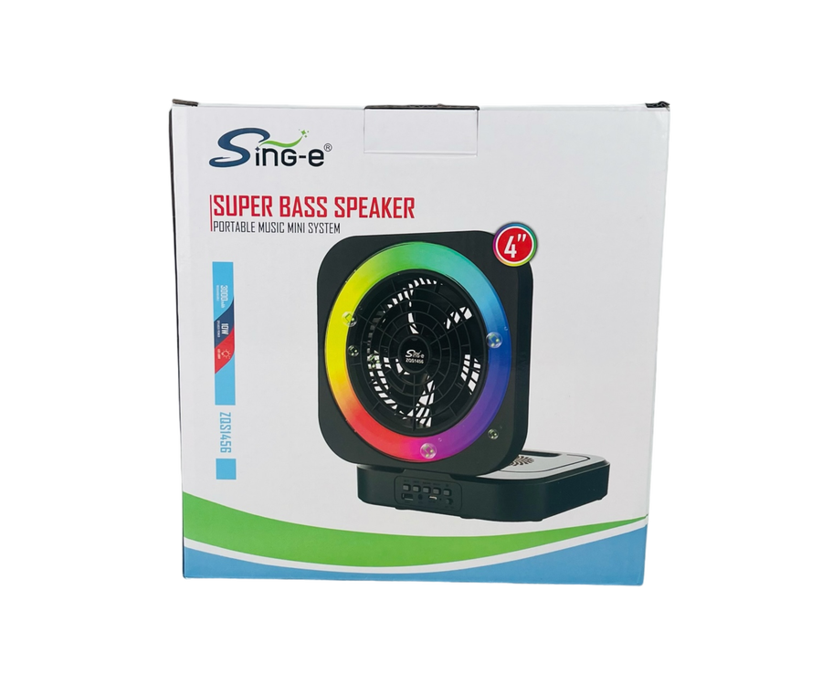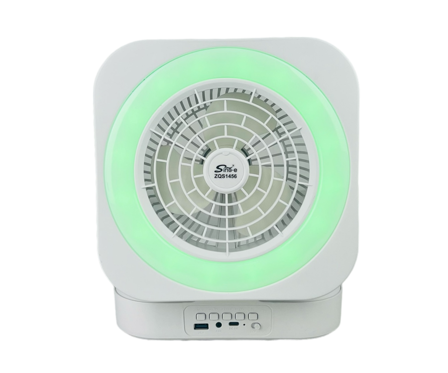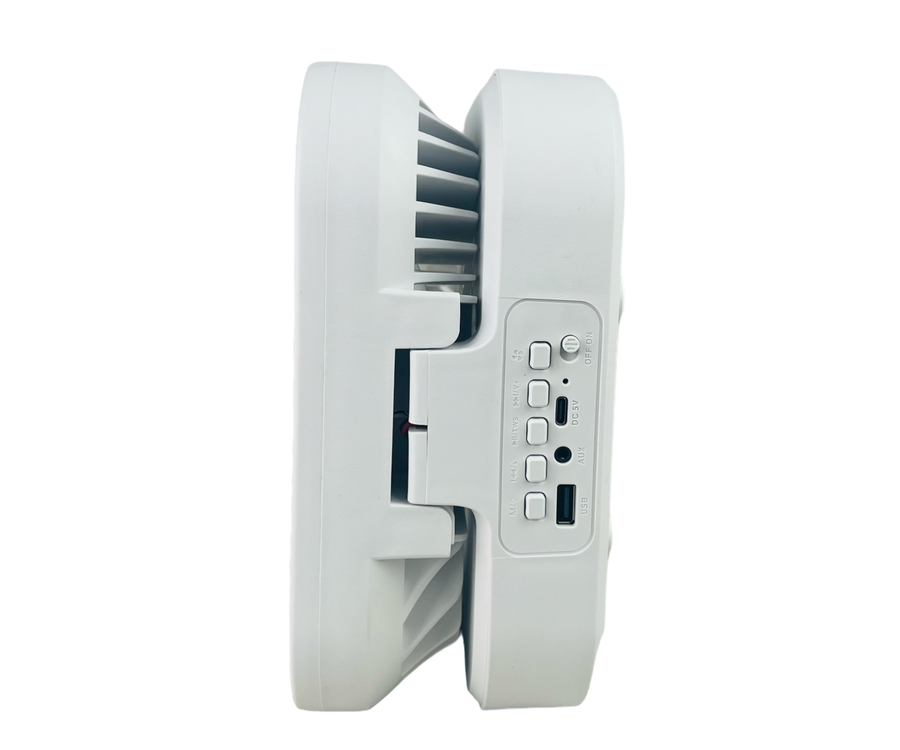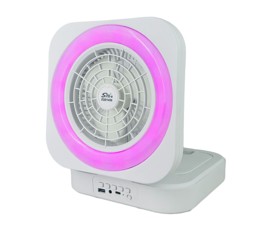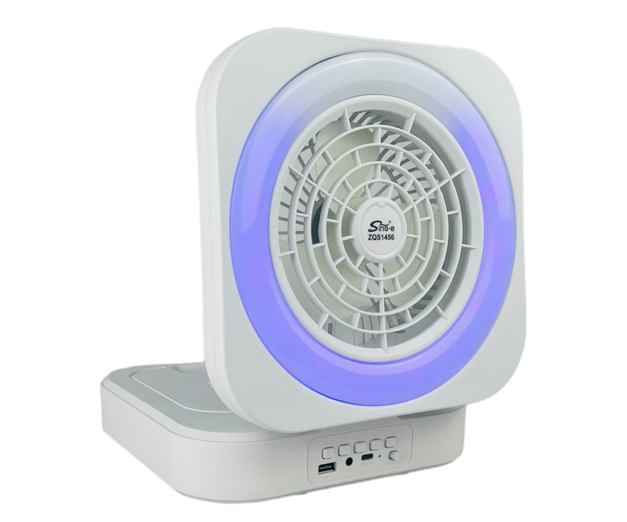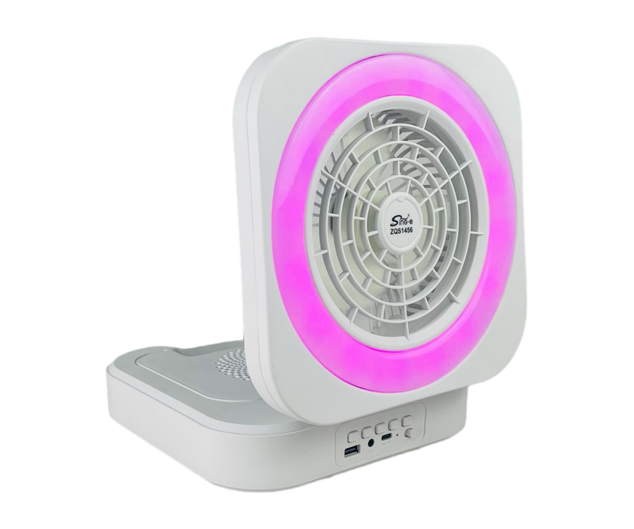 مروحة بتصميم قابل للطي عصري وبسيط مع مكبر صوت واضاءة LED
