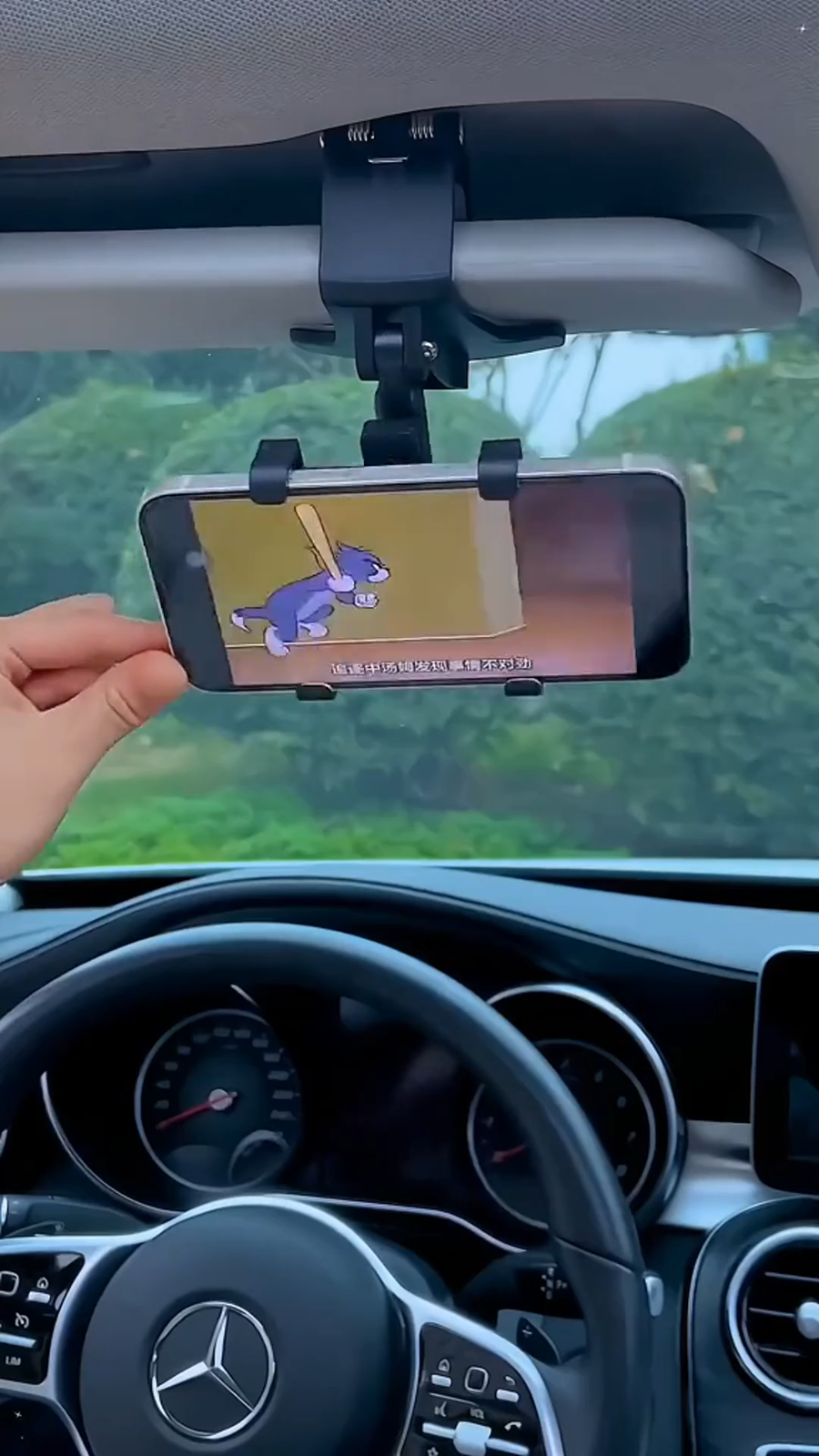 تثبيت الهاتف على عجلة القيادة (الدركسون) أثناء القيادة.