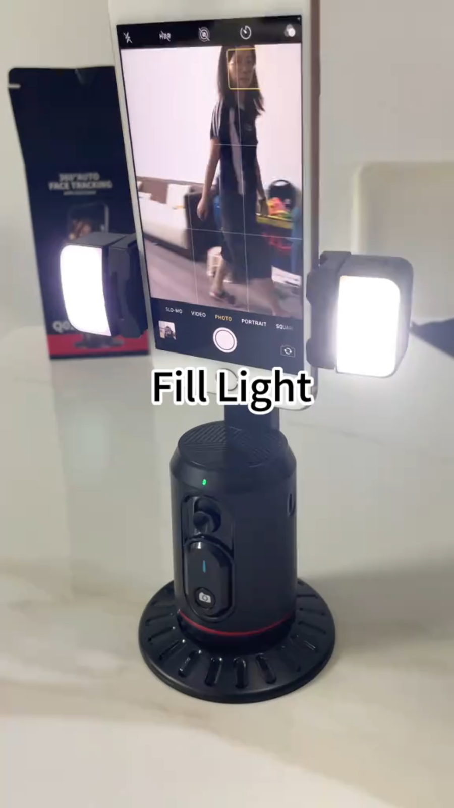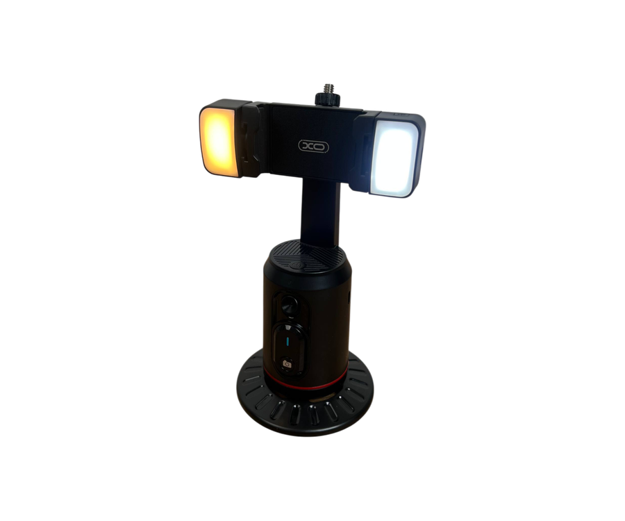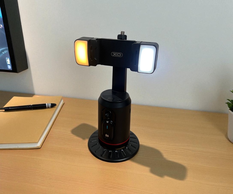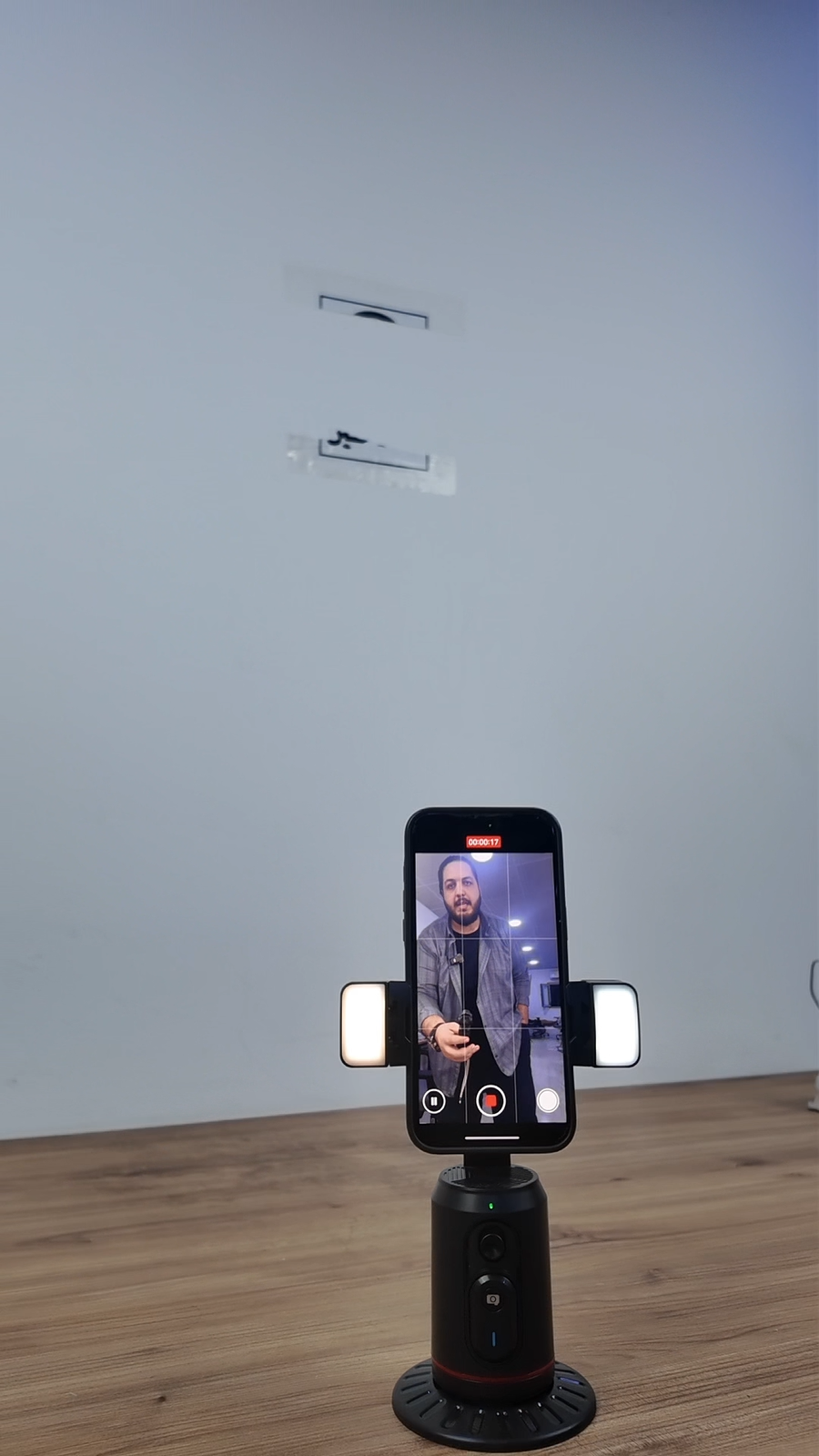 زاوية تصوير قابلة للتعديل من وضع الجلوس إلى الوقوف، مع تثبيت محكم للهاتف حتى عرض 11 سم.