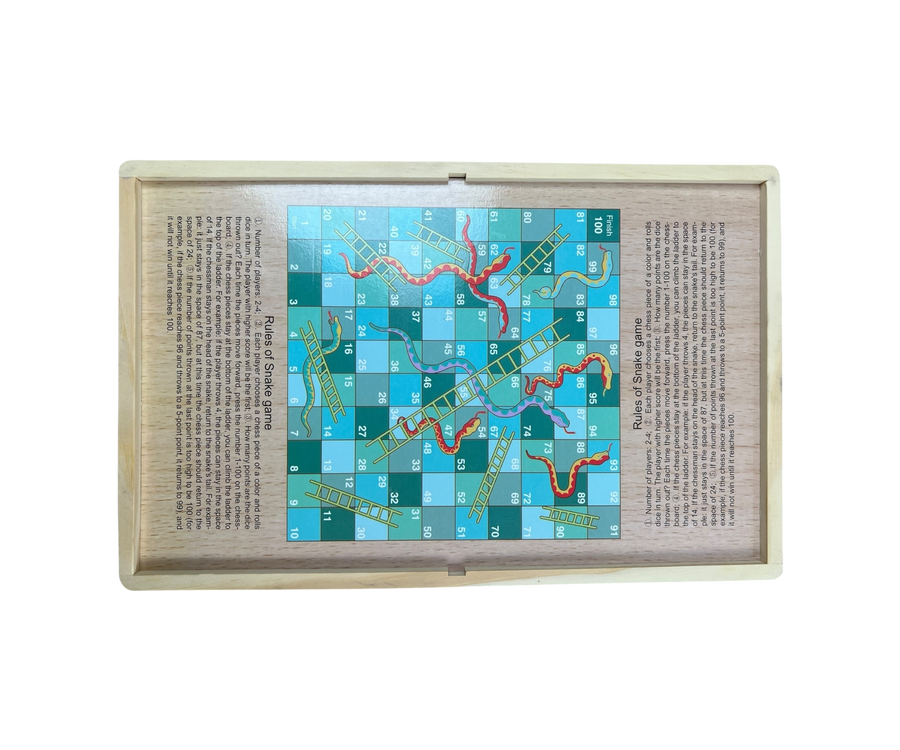 دليل قواعد لعبة السلم والثعبان مطبوع على اللوح.