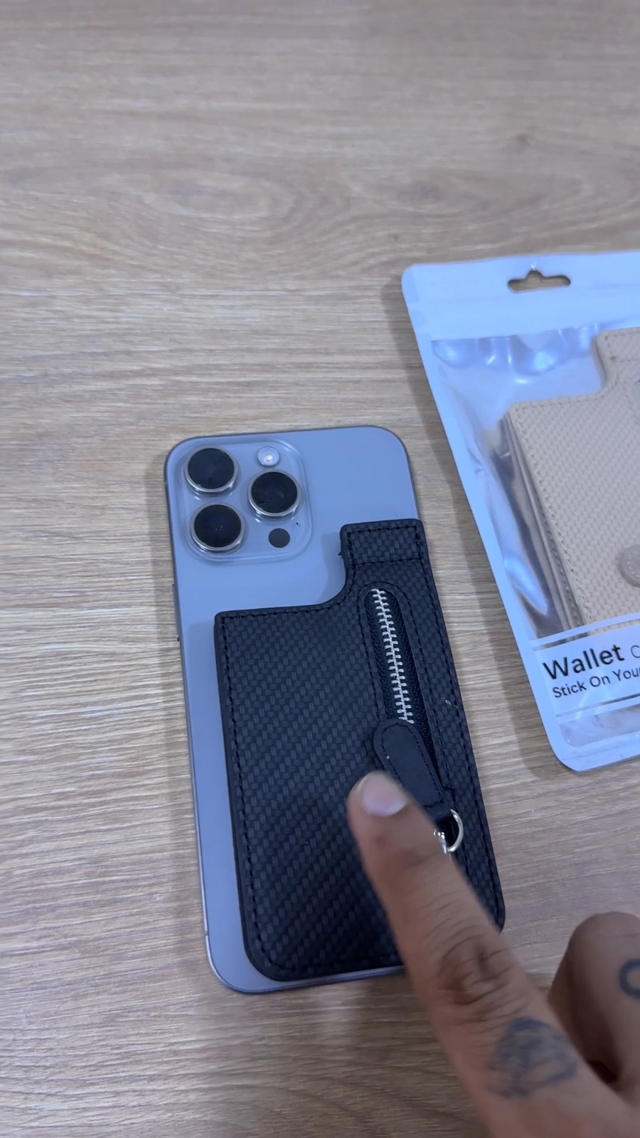 يُفضّل تثبيت المحفظة على جراب الهاتف وليس على الهاتف مباشرة